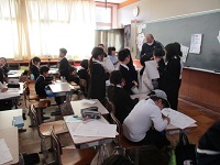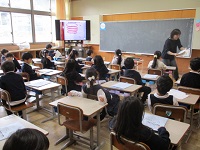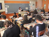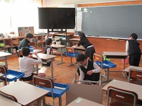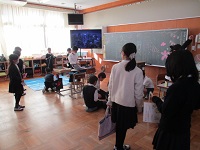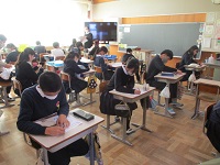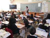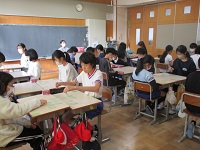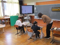 1年生が、「くらべかた」の学習を振り返っていました。「くらべかた」の学習では、「長さ」「広さ」「かさ」を比べました。それぞれのくらべ方で何が大事であるかということに気づいたようです。2年生は、国語科のテストに向けて、学習をしていました。2学期に学んだ内容を忘れずに、3学期にいかしてほしいです。3年生は、体育科「ネット型ゲーム」の学習です。ソフトバレーボールの易しい版のゲームに取り組んでいます。