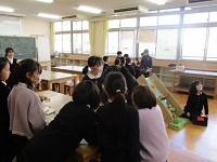 4年生が3年生に向けて、クラスごとに「吾妻川博覧会」、「吾妻川万博」を行いました。自分たちが学んだ吾妻川についていろいろなブースを設け、3年生に楽しみながら学んでもらおうとする姿が見られました。体験コーナーもあり、3年生も吾妻川のことを身近に感じたようです。2学年ともに、今回学んだことを次の学習にいかしてほしいです。