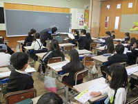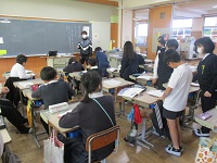 4年生がテストを返してもらい、復習をしていました。どのように答えるとよりよいのか確かめながら直したり復習したりしました。5年生は、体育科ネット型ゲームの学習で、ソフトバレーボールの簡易版に取り組んでいます。うまくレシーブすることができるようになってきました。6年生は、今日からB組が学級閉鎖があけました。6年生のフロアが少しにぎやかになりました。早速、テストに取り組んでいました。