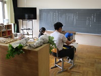 1年生が道徳科の学習をしていました。「ひむかかるた」という宮崎県に伝わるかるたのお話をもとに学びました。学習の終わりには、滋賀県らしいものや大津市らしいものをたくさん発表していました。2年生は、「短縄」の学習です。時間内に何回跳べるかを数えながら頑張っていました。記録が更新できるといいですね。
