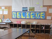 4年生がここのところ頑張っていた小数の学習のテストに取り組んでいました。学習の成果が発揮できたのではないでしょうか。5年生は、国語科の学習で「冬と言えば・・・」という問いに対して、思いつくことをどんどん発表していました。季節を感じることをこれからも大切にしてほしいです。6年生は、2クラスが学級閉鎖中で少しさびしい状況です。スペースもがらんとしています。学年で取り組んだ自由進度学習の全員ミッション。全員の図形をしきつめると、「BELIEVE」の文字が浮かびあがりました。