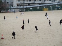 1年生が「書き初め」の学習をしていました。一文字一文字、どこに気をつけて書くのがよいのかを確かめながら丁寧に書きました。2年生は、「みきのたからもの」というお話の好きなところと、その理由を説明する文を書いていました。一生懸命考える姿が見られました。3年生は、今日はB組が「ネット型ゲーム」の学習に取り組んでいました。ボールの扱いやコート内での動きがうまくなってきました。