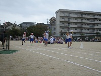 | 2025/10/18 運動会6 続いて4年生のリレーを行いました。走りんピックの時よりもタイムを縮めることを目標に頑張りました。3年生からのリレーの学習を活かしたレースができたと思います。 |