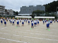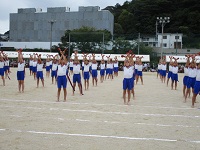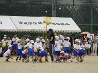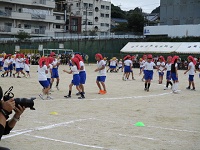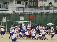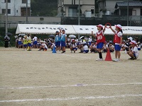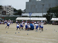 | 2025/10/18 運動会9 小学校生活初めての運動会を迎えた1年生の団体競技です。空高くそびえるかごをめがけて、一生懸命玉入れをしました。たくさん入れることができ、感心しました。 |