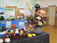 | 2025/10/27 ハロウィンかざり 今年も、花市商店の皆様が、児童昇降口前に素敵なハロウィンかざりをしてくださいました。お花の紹介もかかれていて、子供たちが立ち止まって見惚れています。保護者の皆様、地域の皆様も機会がありましたら、ぜひご覧ください。 |