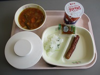 | 2025/10/29 今日の給食 今日の給食の献立は、 【おすすめカレー・残さず食べようデー】 麦ごはん 飲むヨーグルト フランクフルト 長等小学校おすすめカレー 大根のサラダ・しそドレッシング でした。長等小学校おすすめカレーは、「苦手な野菜を克服しようカレー」でした。きょうもおいしくいただきました。 |