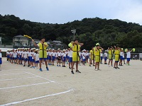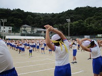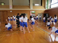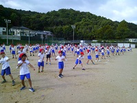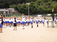 | 2025/10/15 運動会見向けての全校学習A 準備体操の学習をしました。体操係の子どもたちが、前で全校のみんなの手本となりました。当日も頑張ってほしいです。 |