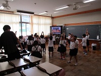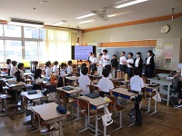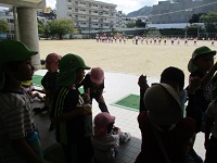 | 2025/10/07 かわいいお客さん 逢坂幼稚園の子供たちと先生方が、3・4年生の運動会に向けての学習をみに来てくれました。3・4年生の姿を見て、「かっこいい!」という声があがっていました。また、遊びに来てね。 |