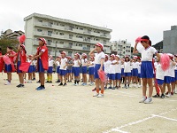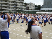 | 2025/10/08 応援学習 今日から、運動会に向けての応援の学習が始まりました。高学年が中心となり、みんなをまとめる姿がありました。 |