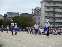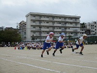 | 2025/10/18 運動会3 競技のトップバッターは5年生のリレーです。4年生の時よりも力強い走りと、スムーズなバトンパスをすることができました。 |