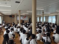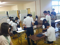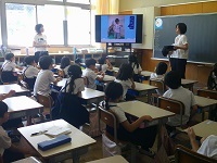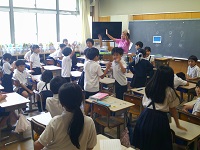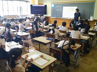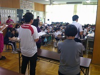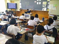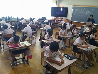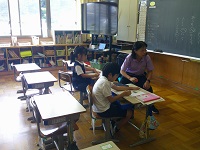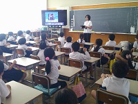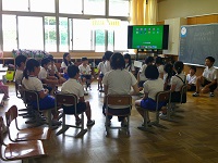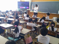 | 2025/09/19 北大津養護学校の先生との学習(1年生) 来週、北大津養護学校の友達と交流する1年生が、北大津養護学校の先生と一緒に学習しました。最初にじゃんけんゲームで先生と仲良くなり、そのあと、北大津養護学校のことやそこで学んでいる友達のことについて知りました。 |