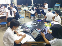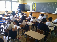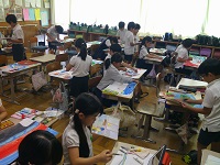 | 2025/09/25 今日の学習の様子(上学年) 初任者研修の一環で、打出中学校の美術科の先生が4年生に、家庭科の先生が6年生に来てくれました。中学校の先生に関わっていただき、たのしく学習することができました。5年生は、分数の通分の学習をしていました。学習内容が難しくなってきていますが、一生懸命取り組みました。 |