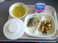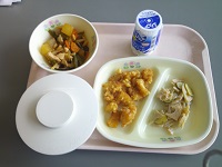 | 2025/09/19 今日の給食 今日の給食の献立は、 【郷土料理・特産物・香川県】 麦ごはん 牛乳 さわらの竜田揚げ 小松菜のけんちゃん レタス入りコンソメスープ 小松菜のけんちゃんとレタス入りコンソメスープは、新しいメニューでした。今日もおいしくいただきました。小松菜のけんちゃんの材料の油揚げに不具合があり、油揚げ抜きでの提供となりました。連日ご迷惑をおかけし、申し訳ございません。 |