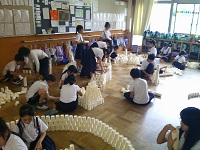 | 2025/09/25 今日の学習の様子(下学年) 1年生が北大津養護学校の友達と交流しました。一緒にリズム遊びを楽しみました。2年生は、ジョイス先生と外国語活動をしました。色を英語で表現しました。3年生は、「お話の絵」の学習をしています。黙々と取り組む姿が見られました。 |