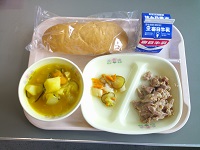 | 2025/09/25 今日の給食 今日の給食の献立は、 コッペパン 牛乳 豚肉のガーリック焼き はくさいサラダ 野菜のスープ煮 でした。はくさいサラダは、新しいメニューです。きょうもおいしくいただきました。 |