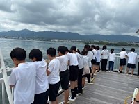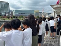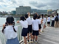 | 2025/09/26 フローティングスクール2 予定どおり、大津港を出港しました。出港見学をしています。お見送りいただいた皆様、ありがとうございました。 |