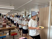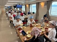 | 2025/09/26 フローティングスクール5 昼食の様子です。うみのこでの初めての食事は、焼き魚定食です。 おかわりする姿も見られました。おいしくいただきました。 全員元気にしています。 |