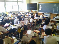 | 2025/09/16 今日の学習の様子(上学年) 4年生が「いろいろな意味をもつ言葉」の学習をしていました。同じ音でも、意味が違う言葉について調べました。辞典を使いながら学習を進め、いろいろな発見があったようです。5年生は、リコーダーで低い音をふけるようになろうと頑張っていました。学習を進めるにつれて、しっかりとした音で演奏できるようになり、二重奏を楽しみました。6年生は、理科の「月と太陽」の学習です。実際は光をあてて実験するのですが、今日はそのリハーサルを行いました。地球と太陽と月の位置関係についてを学んでいきます。 |