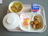 | 2025/09/16 今日の給食 今日の給食の献立は、 麦ごはん 牛乳 厚揚げのあまからだれかけ とうがんの鶏そぼろ煮 アップルシャーベット でした。今日もおいしくいただきました。 |