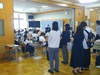 | 2025/09/17 学習参観(上学年) 4年生は、「学年旗をつくろう」をめあてに、書写の学習に取り組みました。学年目標の「YOU」の漢字四文字の中から、自分が大切にしたいと思う字を選んで書きました。5年生は、「公倍数と公約数」の復習に挑戦しました。途中、保護者の皆様にもご協力いただきました。ありがとうございました。6年生は、国語科で「一番大事なものは」の学習をしました。「ワールドカフェ方式」を用いて、対話を深めました。 |