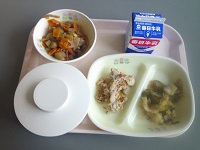 | 2025/09/17 今日の給食 今日の給食の献立は、 麦ごはん 牛乳 豚肉のマーマレード焼き キャベツの塩昆布あえ 筑前煮 でした。今日もおいしくいただきました。 |