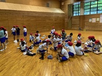 | 2025/09/18 ふるさと体験学習5 ウオータービンゴをしようとしたところ、残念ながら雨が降ってきてしまいました。室内で、「やまの子ウオークラリー」をして楽しみました。 |