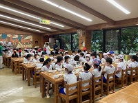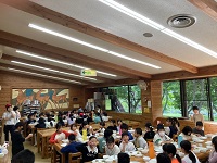 | 2025/09/19 やまのこ体験学習7 葛川で2日目の朝を迎えました。朝食の様子です。みんな元気にしています。 |