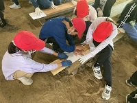 | 2025/09/18 ふるさと体験学習4 命の学習をし、あまごを焼いていただきました。この学習を通して、「命をいただく」ということに感謝し、食べ物を大切にしようとする気持ちを育んでほしいと思います。 |