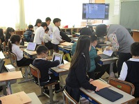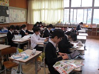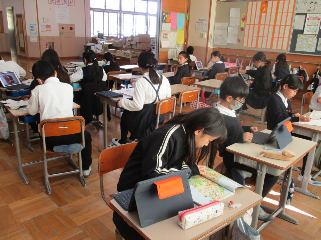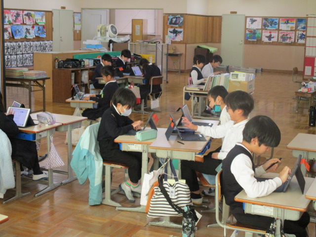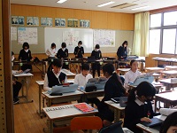 | 2025/12/02 今日の学習の様子(上学年) 4年生が音楽科の学習で、自分たちでつくった旋律の発表会をしていました。お互いにしっかりと聴きあう姿が見られました。5年生は、社会科の情報の学習をタブレットを使って行いました。意欲的にわからないことを調べながらふぁく集を進めました。6年生は、外国語科の学習です。ジョイス先生との学習にもずいぶん慣れ、英語に親しむことができるようになってきています。 |