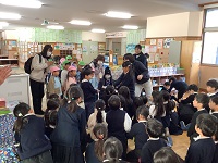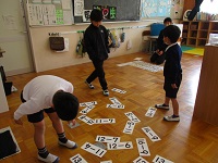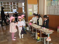 | 2025/12/04 幼小交流(1年生) 1年生が、生活科で行った「秋まつり」を逢坂幼稚園の友達にも楽しんでもらおうと考え、今日その日を迎えました。逢坂幼稚園の年長児と年中児の友達が1年生の教室へ来てくれました。「いらっしゃい!」と声をかけたり、遊び方をわかりやすく説明したりしようとする姿に成長を感じました。共に楽しむ姿がほほえましかったです。 |
