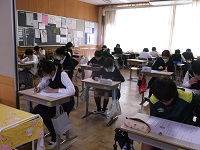 | 2025/12/01 今日の学習の様子(上学年) 4年生が、「人権」について考えていました。難しい言葉ですが、発達段階に応じてしっかりと理解できるといなと思います。5年生は。調理実習を行いました。今回は、ご飯を炊くことと、お味噌汁づくりにチャレンジしました。透明な鍋で炊くので、ご飯が炊きあがっていく様子がよくわかったようです。6年生は、黙々とテストに取り組んでいました。どの学年も「まとめのテスト」の時期ですね。 |