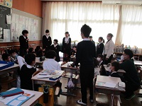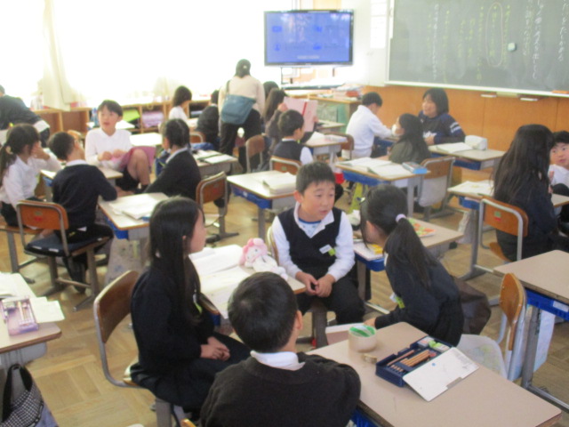 | 2025/12/05 今日の学習の様子(下学年) 昨日一緒に「秋まつり」を楽しんだ逢坂幼稚園の友達が、お礼のお手紙をもって、1年生の教室へ来てくれました。スペースに出て、みんなで迎えました。逢坂幼稚園の皆さん、ありがとう。2年生は、国語科で「相談にのってください」の学習をしています。グループでの話し合いが、ずいぶん上手になりました。3年生は、社会科で見学に行った消防署で学んだことをもとに。新聞づくりをしていました。タブレットもうまく使うことができていました。 |