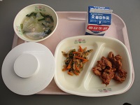 | 2025/12/03 今日の給食 今日の給食の献立は、 【外国料理・韓国】 白ごはん 牛乳 豚肉のサムジャンたれかけ こまつなのナムル タッカンマリスープ(鶏肉の水炊き風スープ) でした。豚肉のサムジャンたれかけとタッカンマリスープ(鶏肉の水炊き風スープ)は、新しいメニューでした。今日もおいしくいただきました。 |