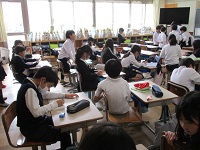 | 2025/11/17 今日の学習の様子(上学年) 4年生は、ジョイス先生と一緒に外国語活動を楽しみました。「How many 〜」という表現を使って、英語での数の表し方を学びました。5年生は、理科の学習で「ものの溶け方」の実験をしていました。協力して取り組む姿が見られました。6年生は、いよいよ明後日から修学旅行です。自分のめあて等を考えました。みんな元気に出発できることを願っています。 |