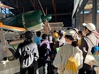 | 2025/11/19 修学旅行7 SORAかさいでは、戦闘機の模型を見せていただきました。 当時つくられていた戦闘機について、話を聞いたり、映像を見たりしました。 |