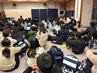| 2025/11/19 修学旅行10 寿楼に到着し、入所式をしています。このあと、各部屋に入ります。 |