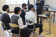 この日は、藤尾小学校へ行って6年生の皆さんに皇子山中学校の紹介をしました。