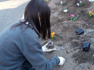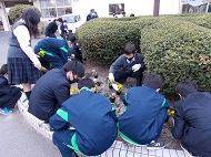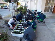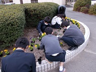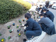 1,2年生の福祉委員会の生徒が花植ボランティアとして、パンジーを植える作業を手伝ってくれました。