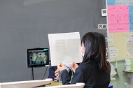 放課後、生徒会のOSK担当メンバーと小学校4校の児童会とでタブレットでのZoom会議を開催しました。