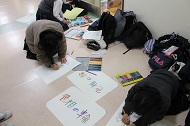 執行部の皆さんが今年度の生徒会スローガン「色相の輪」を生徒みんなに