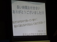 4月から入学する児童の皆さんに、皇子山中学校での生活や行事、部活動、学習などお伝えしました。