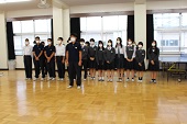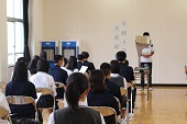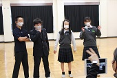 中学校での生活の流れや部活動の紹介、制服のプチファッションショーなどを行いました。