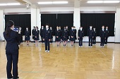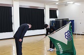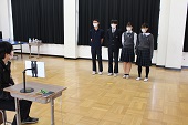 選挙で選ばれた生徒会執行部が集合し、前生徒会長から新生徒会長へ生徒会旗が手渡され、代替わりとなりました。