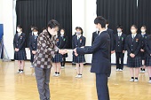 学校長より認証状が手渡され、引き締まった表情で受け取る生徒たちでした。