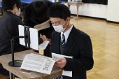 学校長より前生徒会への労いの言葉、新生徒会への期待の言葉が贈られ、前生徒会長からも挨拶がありました。