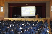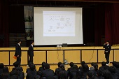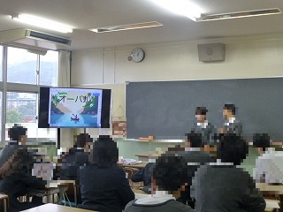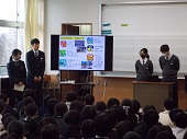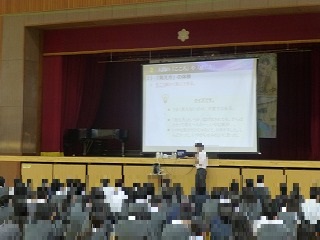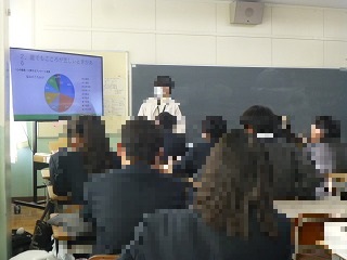 3年生では、税務署の方に講師で来ていただき、税について考える時間をもちました。生活と税とのかかわり、なぜ税をおさめるかなど税について話を聞き、考えました。ある生徒は、「今まで税はないほうがいいと思っていたけど、今日の授業で私たちの生活を支えていることが分かり考え方が変わりました。」と感想を聞かせてくれました。講師の先生方から、これからも税について少しでも関心を持ってくださいねと話されました。