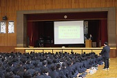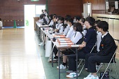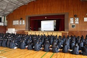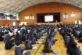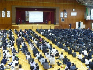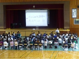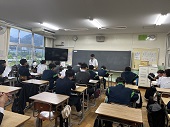 体育館にて第2回進路説明会を5、6時間目に実施しました。今回の説明会では、進路主任より、受検校決定の考え方や、私立高校の出願手続き、滋賀県立高校の受験手続きとその日程、さらにWeb出願の流れについて、詳しい説明がありました。生徒の進路選択に向けて重要な情報が多く含まれており、有意義な時間となりました。ご多忙の中、ご来校いただきました保護者の皆さまありがとうございました。