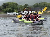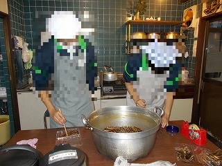 あまごは先生に焼いてもらっています。その間にレクレーション大会の準備を進めています。