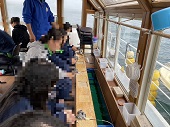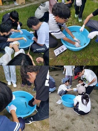 1日目。出発式を終え、8時ごろ出発!目的地の日間賀島に到着し、さっそく干物作りのために魚をさばきました。