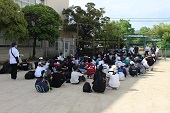 5校時に、コンピュータ室から出火したという想定のもと避難訓練を実施しました。